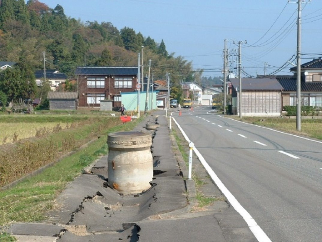 ![]() Earthquake damage in Kashiwazaki city: Liquefaction evidence (sand boiling) (Photo by Dr. Koichi Isobe) |