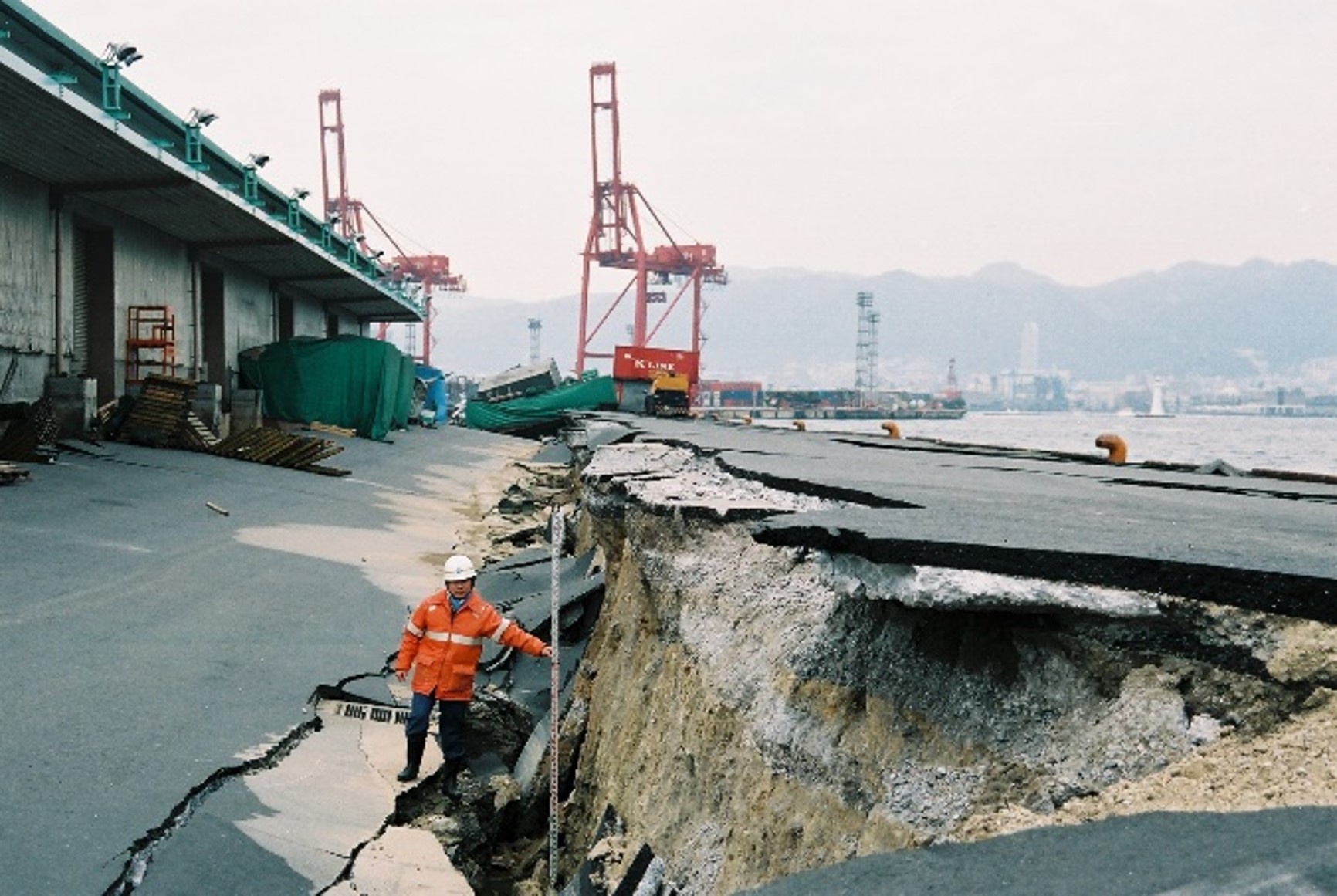 ![]() Port facilities in Kobe were severely damaged by liquefaction (Photo by Dr. Susumu Yasuda) |