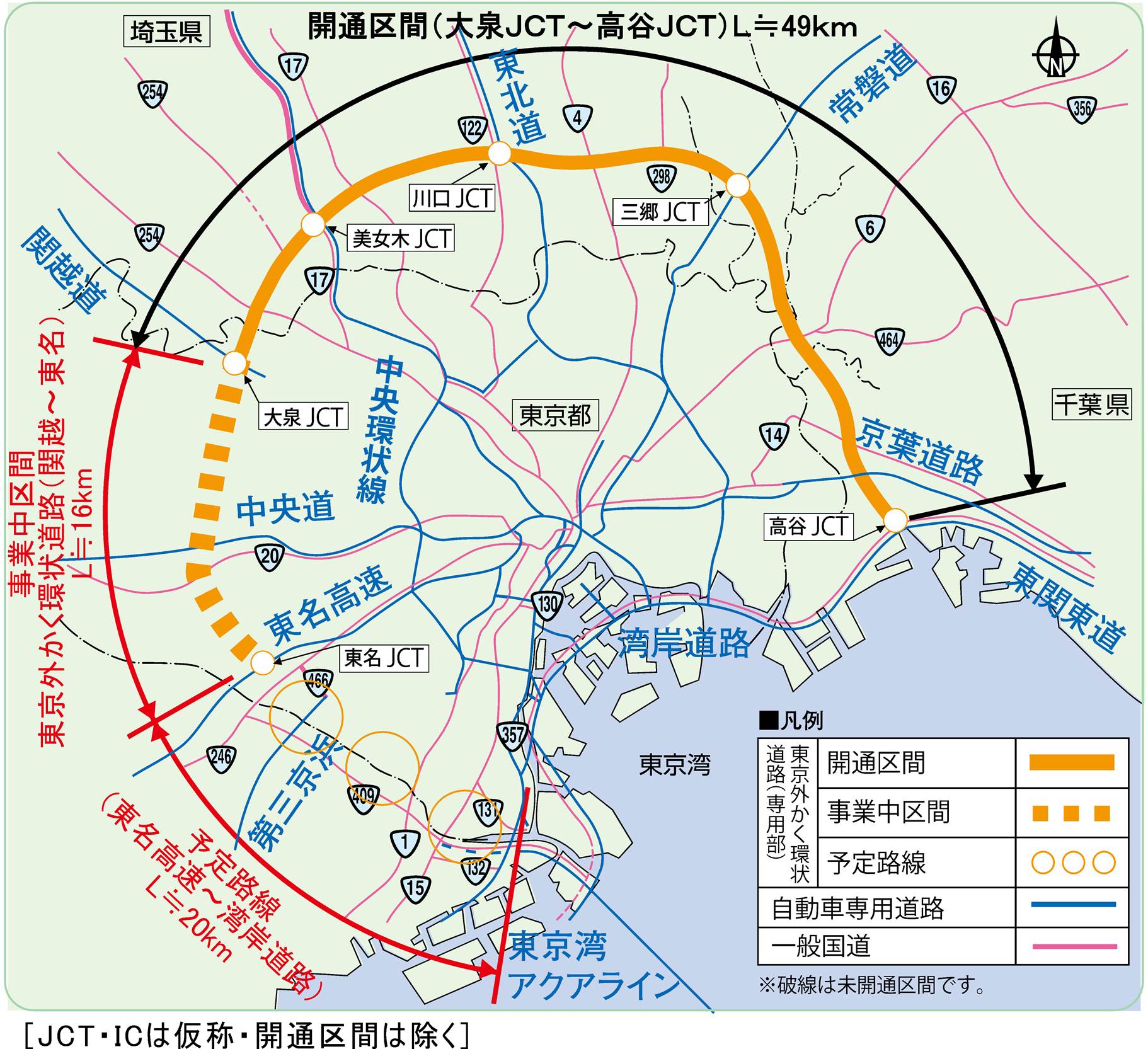 ![]() Expressway network in Tokyo metropolitan area (Image from Tokyo Ring Step: Website by Ministry of Land, Infrastructure, Transport and Tourism: https://www.ktr.mlit.go.jp/gaikan/index.html) |