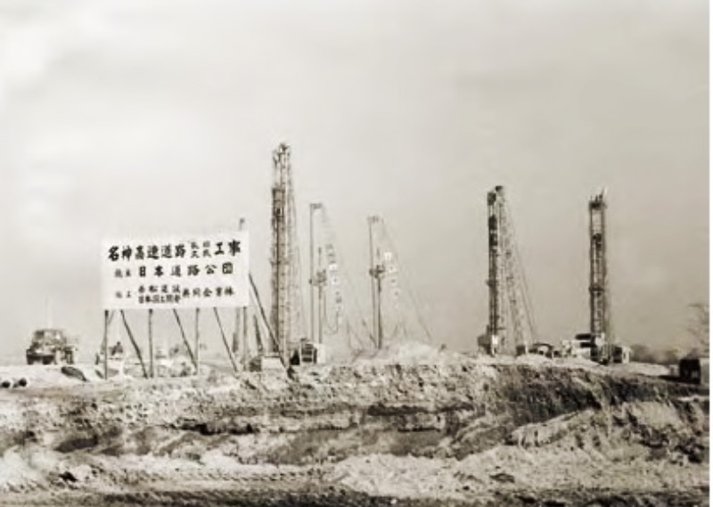 ![]() Sand drain method in Keiyo National Highway, in 1958 (Photo by Sanshin Corporation) |